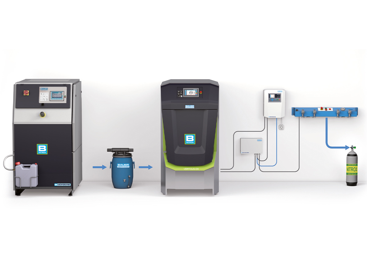 I kombination med BAUER kompressorer från Nitrox-serien skapas ett komplett system för att