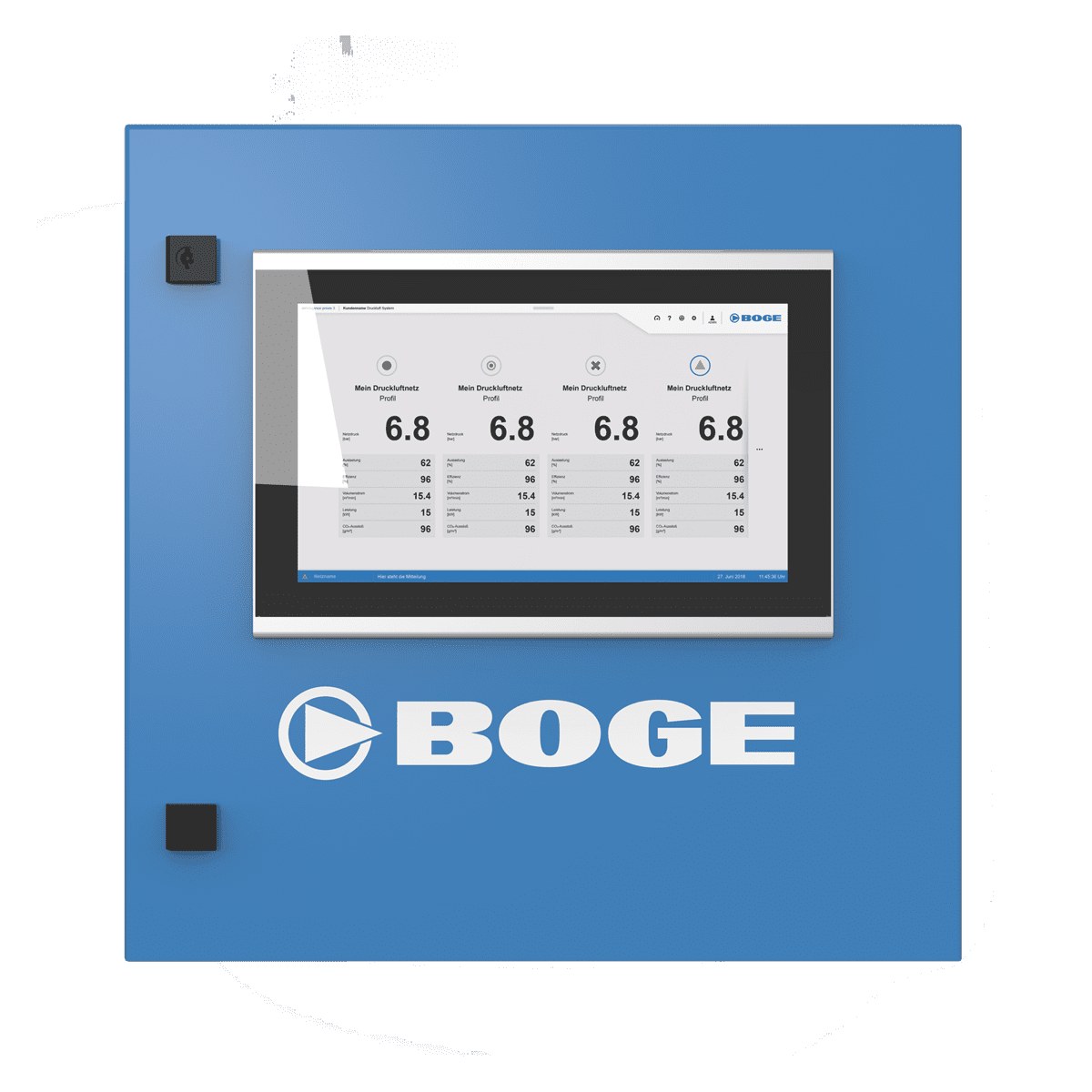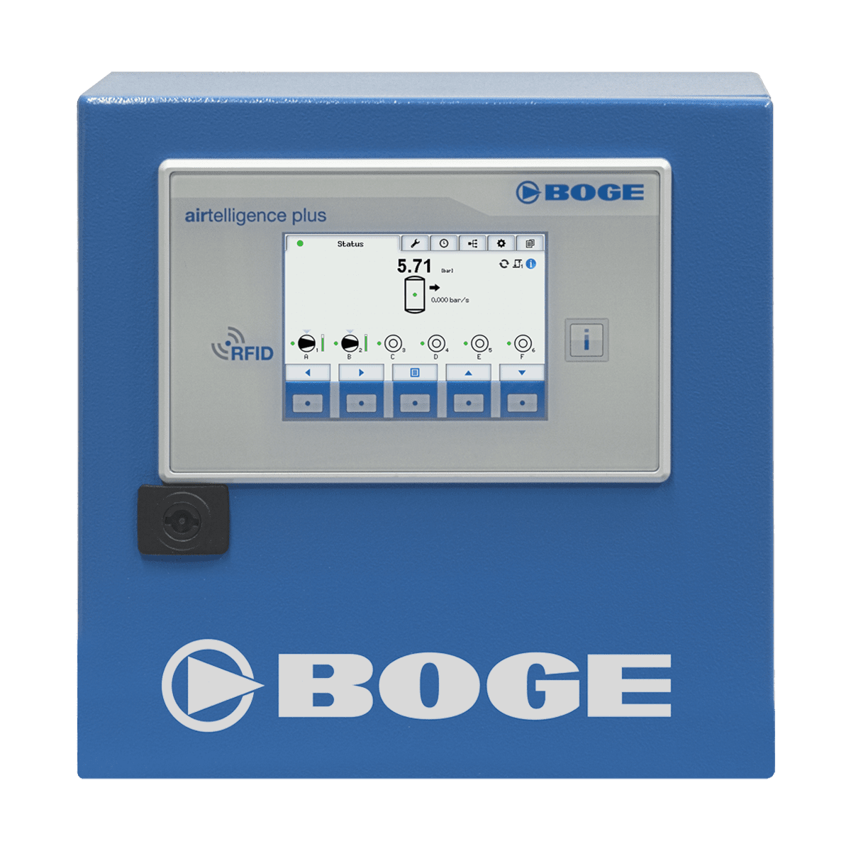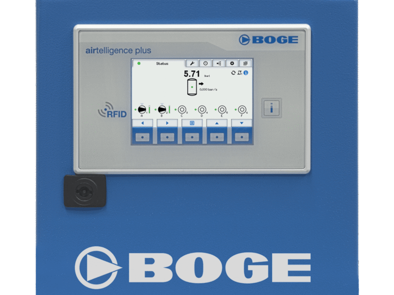 BOGE sätter nya standarder för styrning av trycksluftkompressorer med Airtelligence provis 3. Den senaste versionen av den intelligenta styrningen gör att ett obegränsat antal kompressorer, tryckluftsnätverk och tillbehörskomponenter kan styras och hanteras proaktivt baserat på förbrukning. En högpresterande industriell PC med 15,6” skärm gör systemet till en komplett lösning som är färdig att ansluta. Dessutom kan även äldre kompressorer enkelt integreras. Vidare stöder styrenheten OPC-UA plattformsoberoende arkitektur.