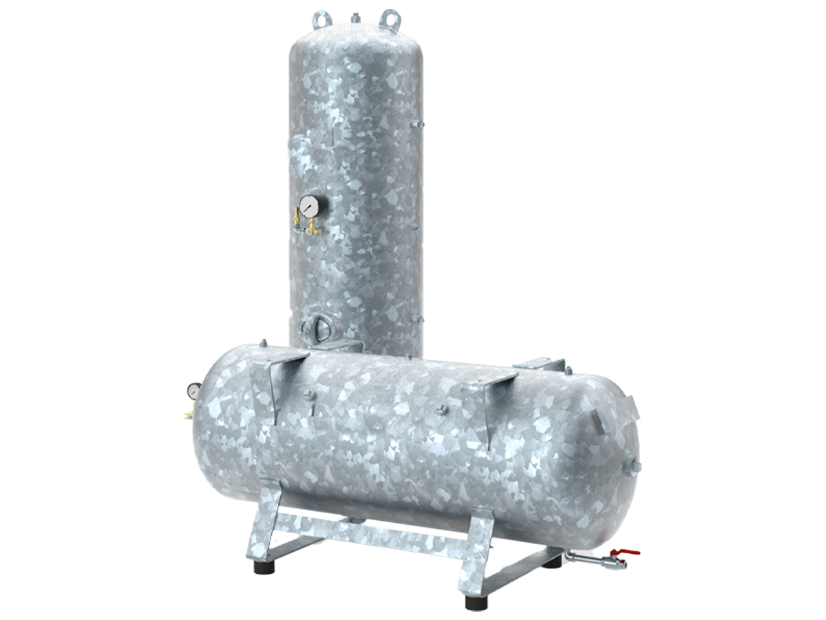 Granzow förser er med tryckluftsbehållare i galvaniserat utförande i storlekarna 50 l. till 10 000 l., med maxtryck på 11, 16 alt 36 bar. Tryckluftsbehållarna finns i liggande samt stående utförande. Tryckluftsbehållare går även att få i annat utförande såsom, rostfritt, högre tryck eller speciella dimensioner. Med alla tryckluftsbehållare från Granzow medföljer anpassade armatursatser för enkel installation.