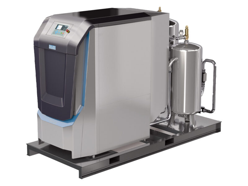 Enheten är utrustad med en tank för intagsbuffert, samt en tank för återvinning av gas från den automatiska kondensavtappningen. Gas från kondenstanken leds automatiskt över till bufferttanken och återvinns i kompressorn. Detta leder till en minimal gasförlust i ert system och allt är monterat på en gemensam balkram till en komplett enhet.